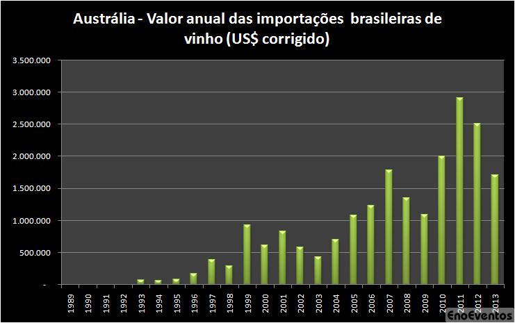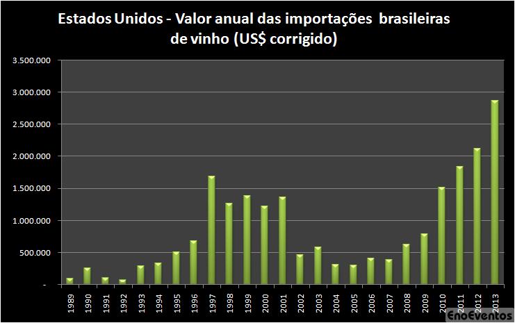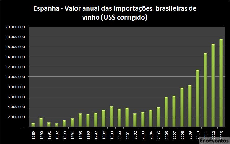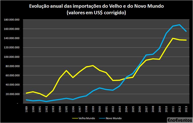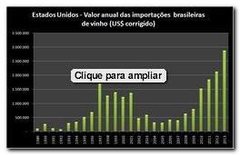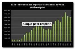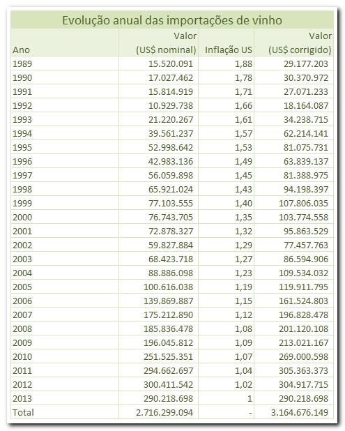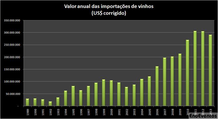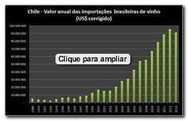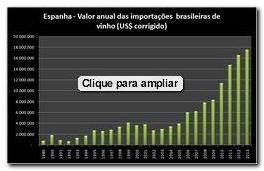 Podemos observar nestes dados uma evolução das importações de vinhos estrangeiros nos últimos anos.