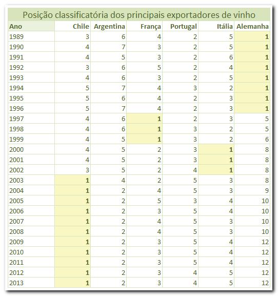 2- Em seguida, não consegui ver em seus números a posição dos vinhos brasileiros em relação ao ranking dos importados.
