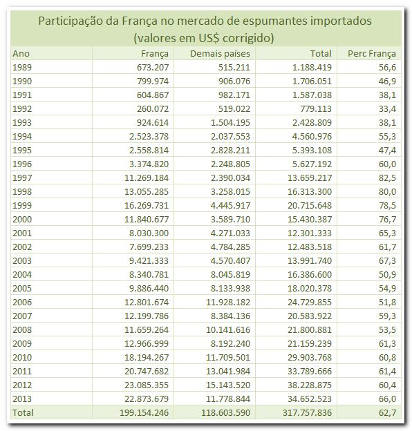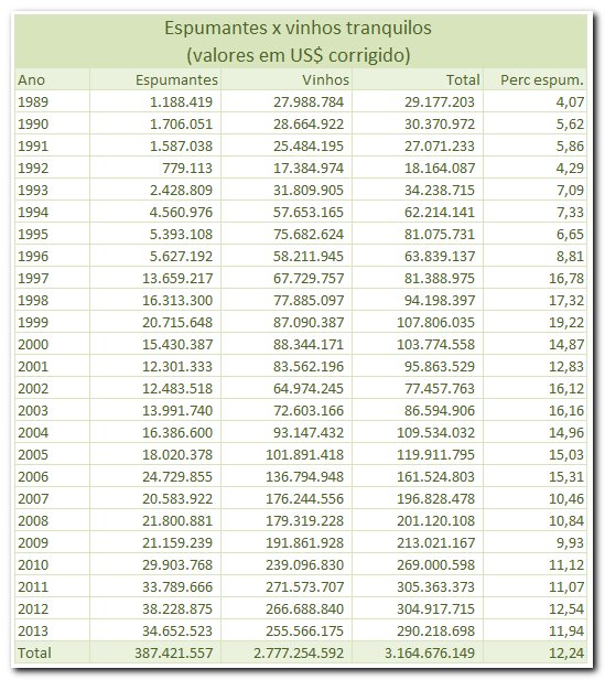 Digo isso, por exemplo pelo aumento dos espumantes franceses. Abs!
