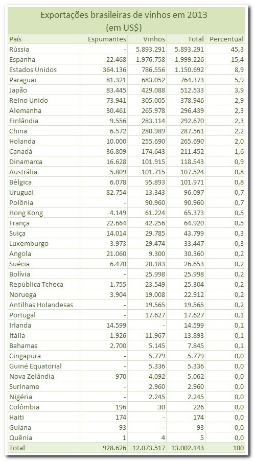 Foi porque, nos dois casos era vinho fino e foi a granel para a Rússia, como faz também Uruguay que exporta excedentes para Rússia a granel, ou porque foi vinho de não vinifera para a Rússia? Para o Paraguai toda a exportação é de vinho de não vinifera para abastecer a demanda dos brasiguaios. Os Paraguaios bebem importado bons sem imposto.