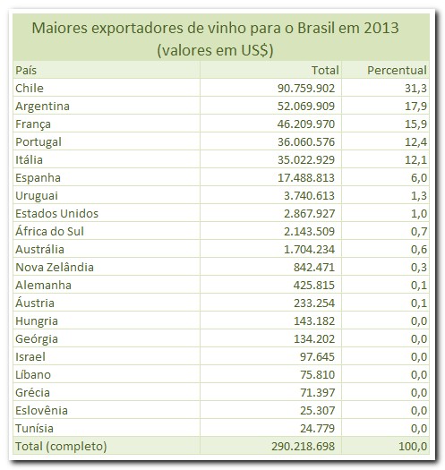 Penso que a tendência em 2014 é ter mais queda nas importações devido à ST estadual (a qual nenhuma importadora se articulou para derrubar mais este imposto exagerado) e o alto índice de contrabando de vinhos na região sul vindos do Paraguai e Argentina serão fatores determinantes para 2014. |