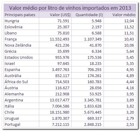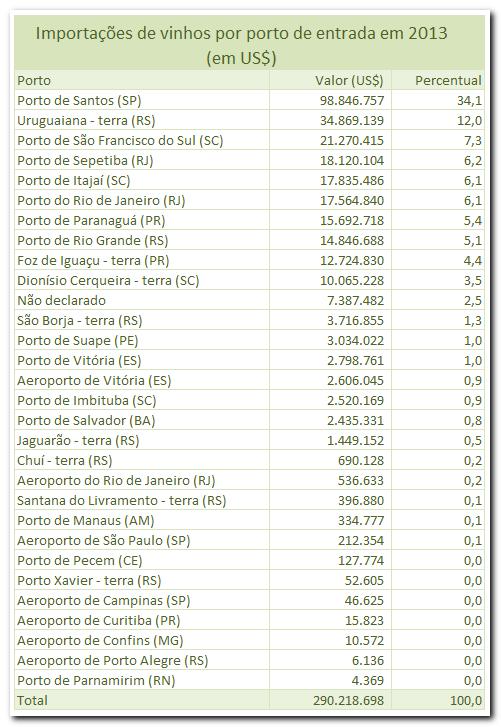 Cris, em relação à tabela Importação de vinhos por porto de entrada em 2013, realmente a coisa se passa da forma com que você descreve.