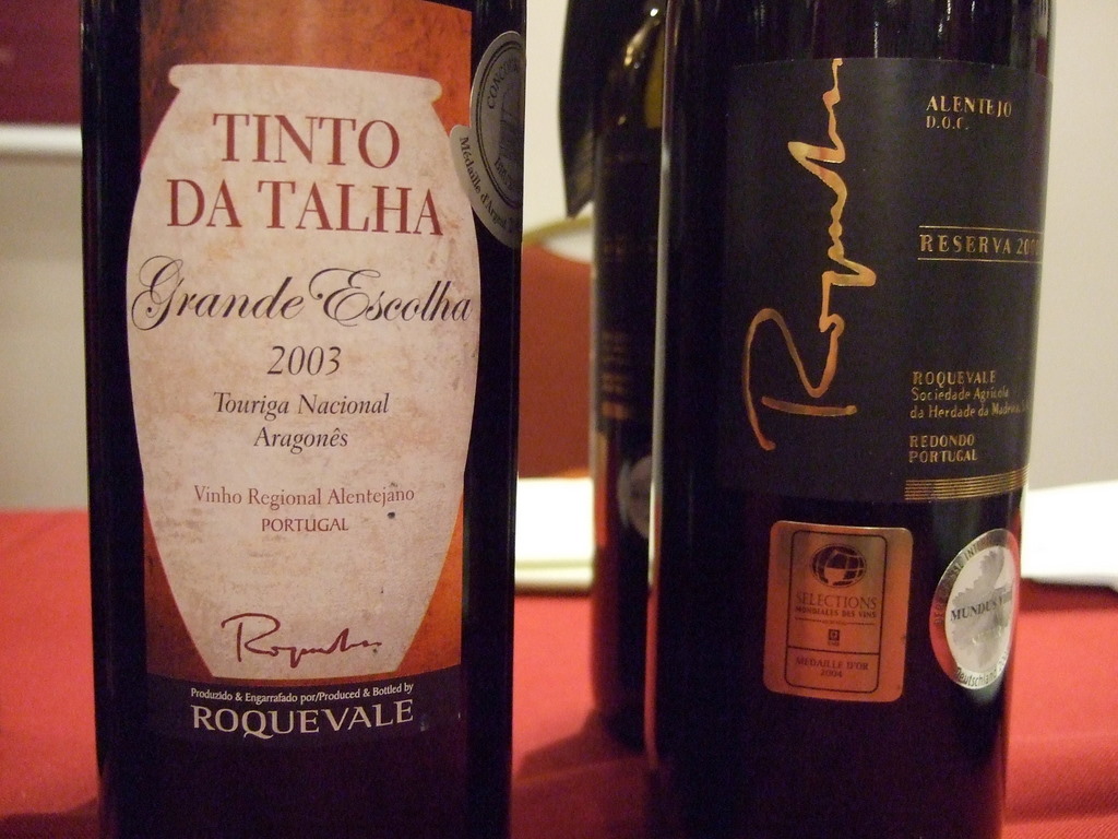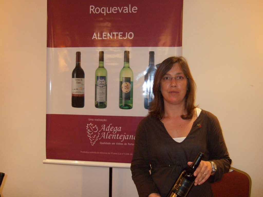 Roquevale (Alentejo) e sua enóloga Engª Joana Roque do Vale apresentando os deslumbrantes Tinto da Talha Grande Escolha 2003 e o Reserva Tinto 2000 |