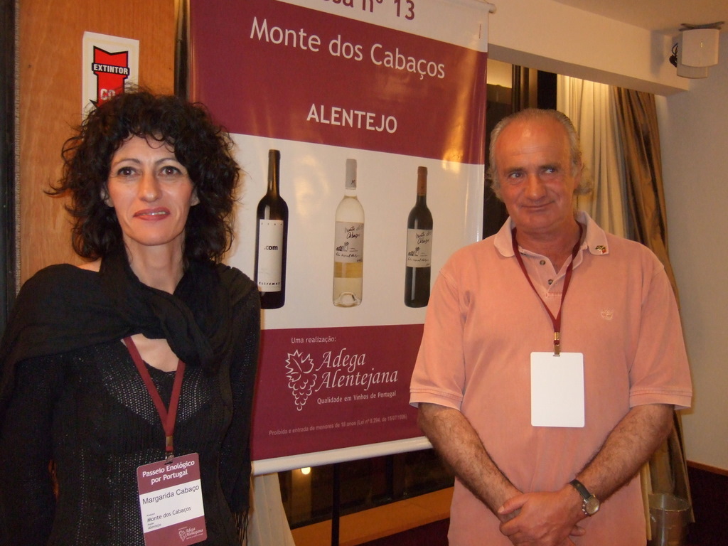 Monte dos Cabaços (Alentejo) e seus proprietários Joaquim e Margarida Cabaço, apresentavam orgulhosos o vinho de seu filho Tiago, o moderno ".COM", e o delicioso Tinto 2002 |