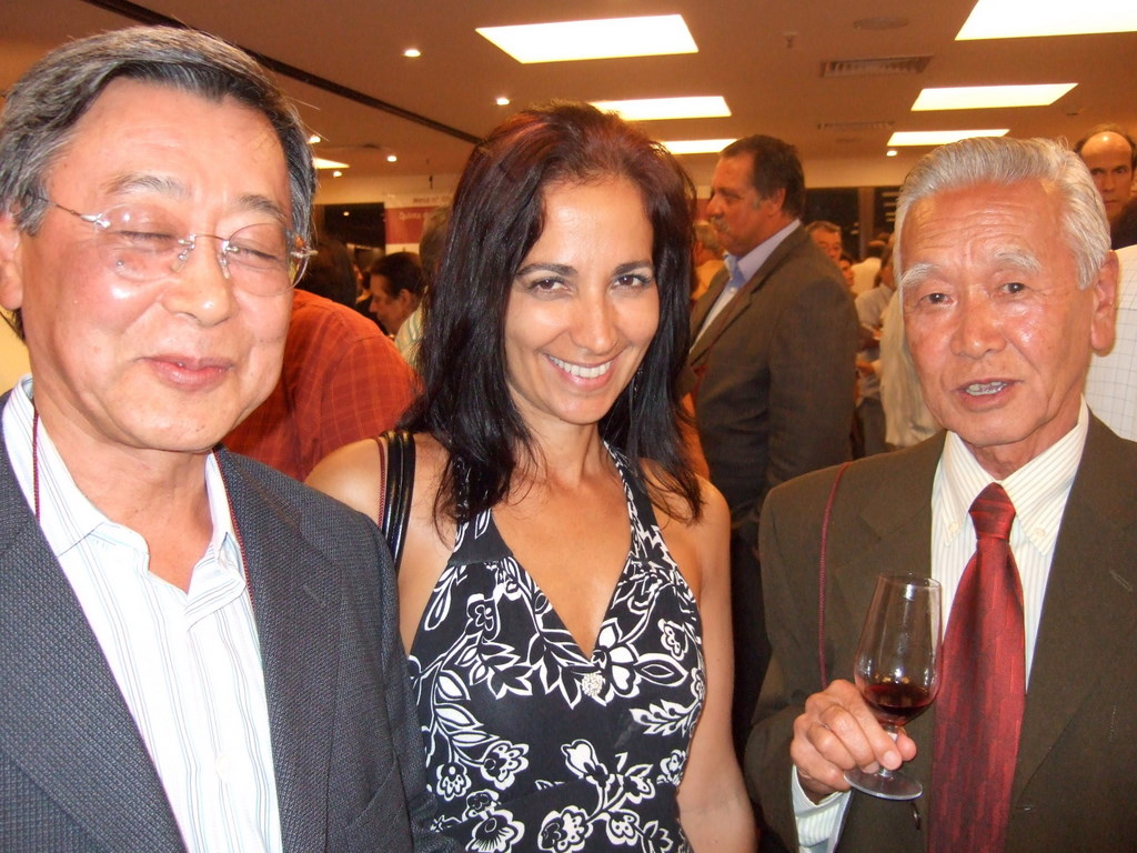 Satossi, do BC, Neusa Abbes e Abe Hiroshi, da ABS |