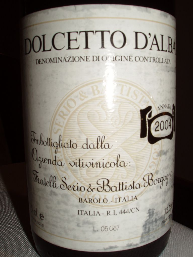 Composição: Dolcetto 100% Graduação: 12,5 graus Safra: 2004 Vinhedos: Dolcetto 100%. Origem das uvas: Uma mistura de vários vinhedos cultivados em Barolo, Novello e Monforte d'Alba localizados à direita do Rio Tanaro. Vinificação e Envelhecimento: Este ao contrário dos outros vinhos é jovem por excelência. Nasce de uma clássica vinificação em tonéis de madeira com remontagem do "chapéu". Depois da fermentação malolática, o vinho matura em tonéis de aço e mantém assim toda a sua fragrância de origem. Seu afinamento é feito em garrafa na posição horizontal durante alguns meses.
