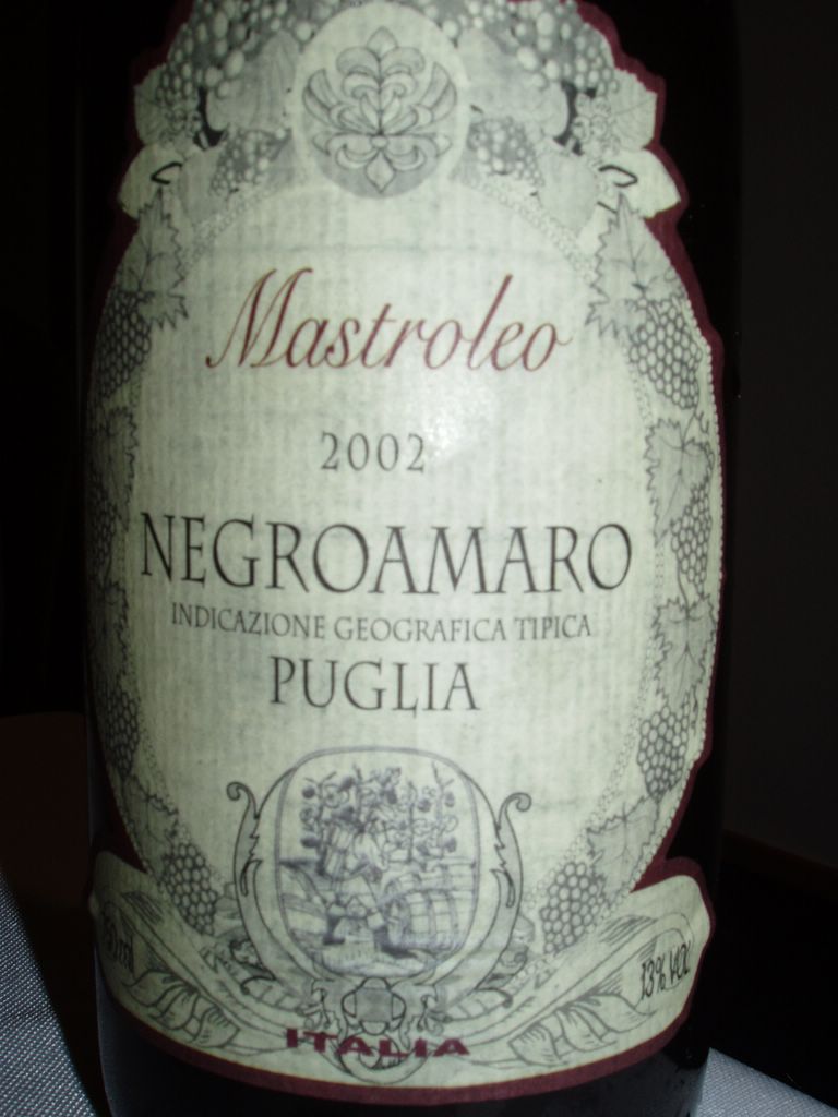 Composição: Negroamaro 100% Graduação: 13,0 graus Safra: 2002 Vinhedos localizados em Lecce, na parte sul da Puglia (Apullia), Carmiano, Arnesano, Monteroni. Colheita manual. Rendimento 80q /ha. Fermentação malolática e estágio breve em carvalho.