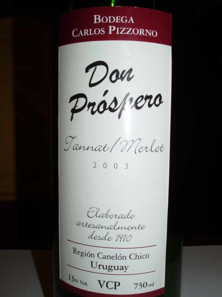 Don Próspero Tannat Merlot 2003 Região: Canelón Chico Álcool: 12,7% Castas: Tannat 60% - Merlot 40%5 Nariz: frutas vermelhas e negras, ameixa, cereja e pimentão Boca: boa estrutura, taninos maduros e final prolongado Preço: R$ 30,00 (R$ 24,00 para associados da ABS) |