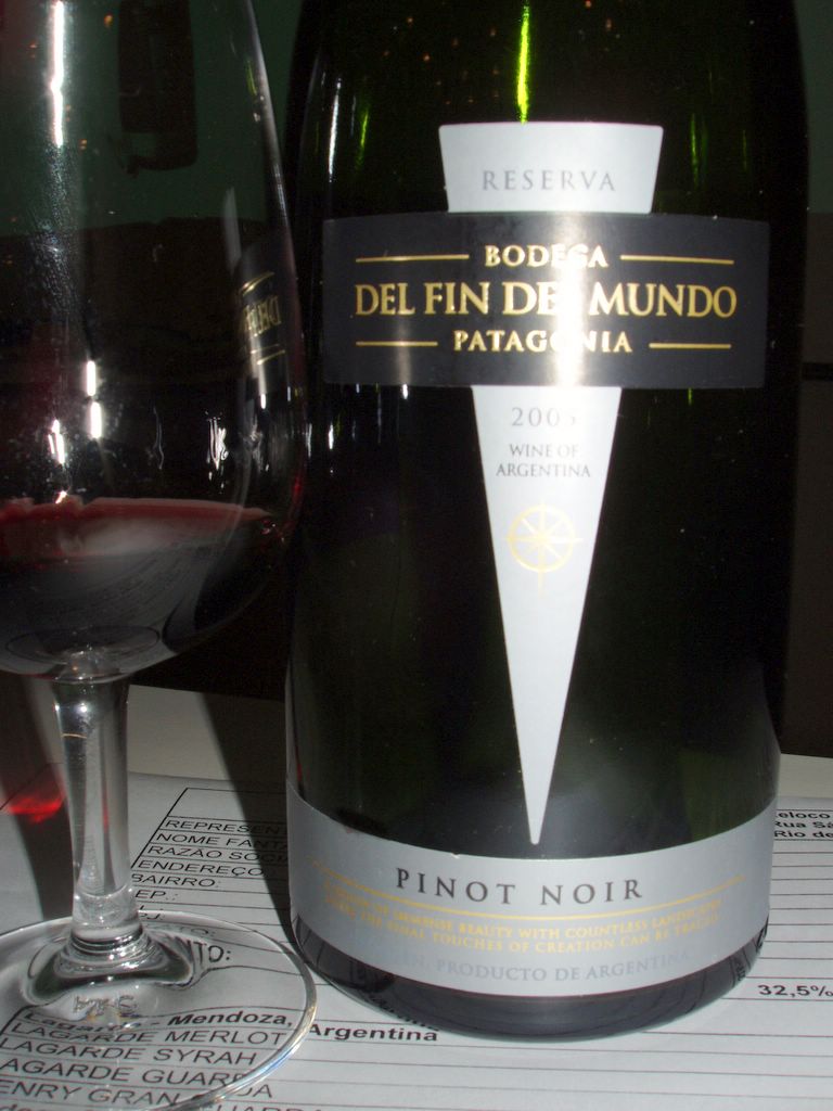 Bodega del Fin del Mundo Reserva Pinot Noir 2005 Castas: 100% pinot noir Envelhecimento: 8 meses em carvalho francês e americano Graduação alcoólica: 14,0% Serviço: 16-18° (Humberto prefere entre 14-15°) Guarda: 4-5 anos Harmonização: carne assada, presunto cozido, queijos cremosos Prova: aromas florais Preço: R$54,00 (promoção para ABS: R$45,90) |