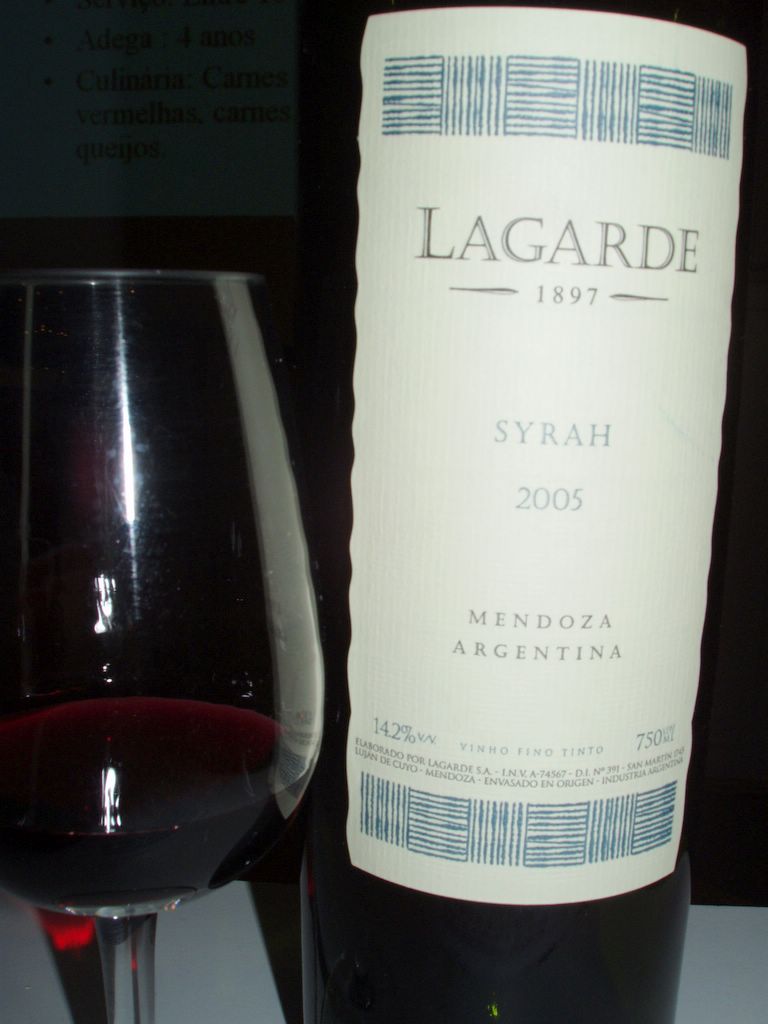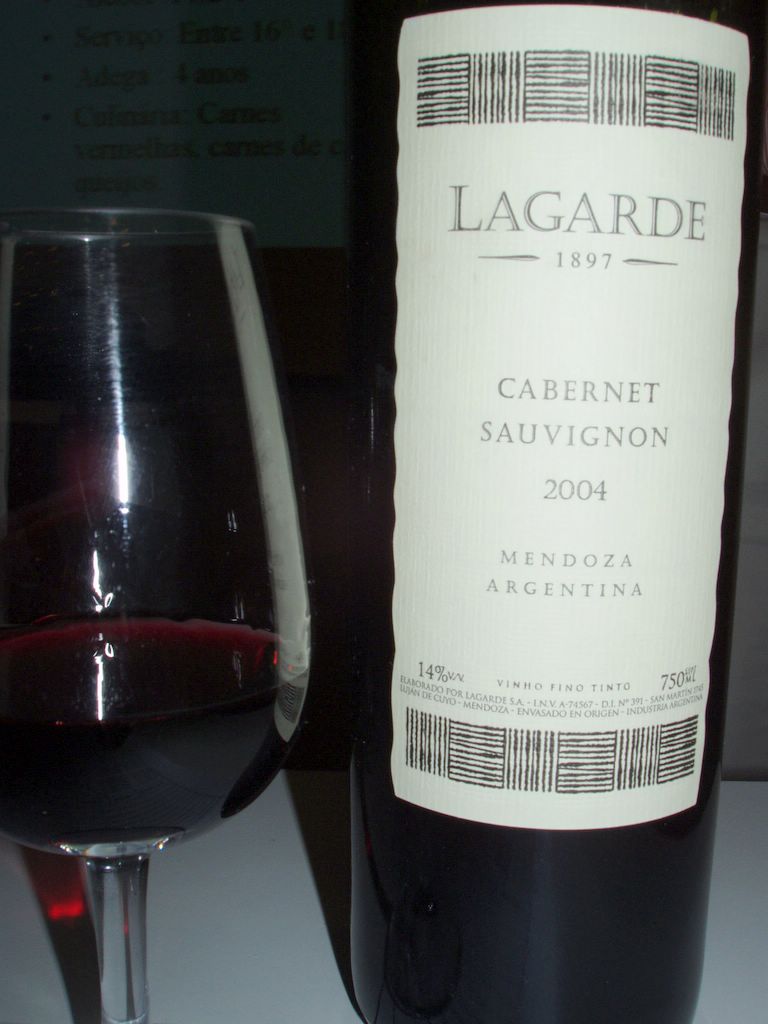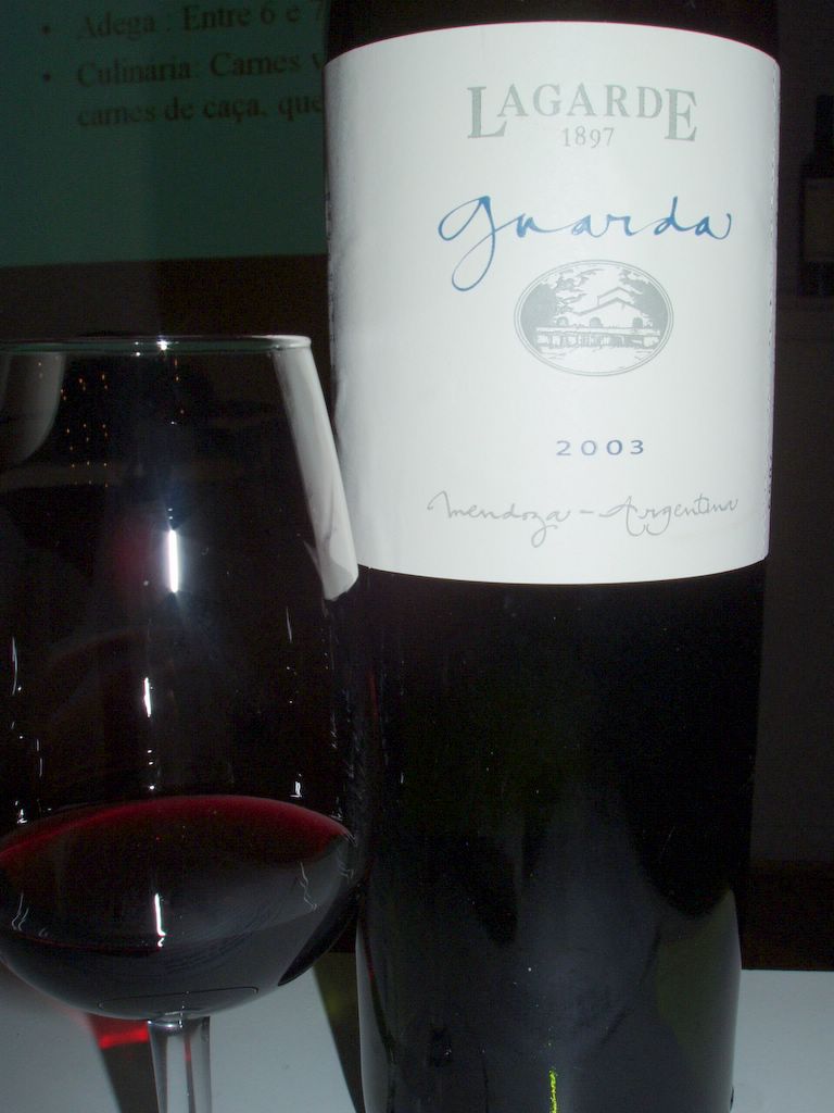 Lagarde Malbec 2004 Castas: 95% merlot, 5% cabernet sauvignon Sem madeira Graduação alcoólica: 15,0% Serviço: 16-18° Guarda: 4 anos Preço: R$43,00 (promoção para ABS: R$29,00) |