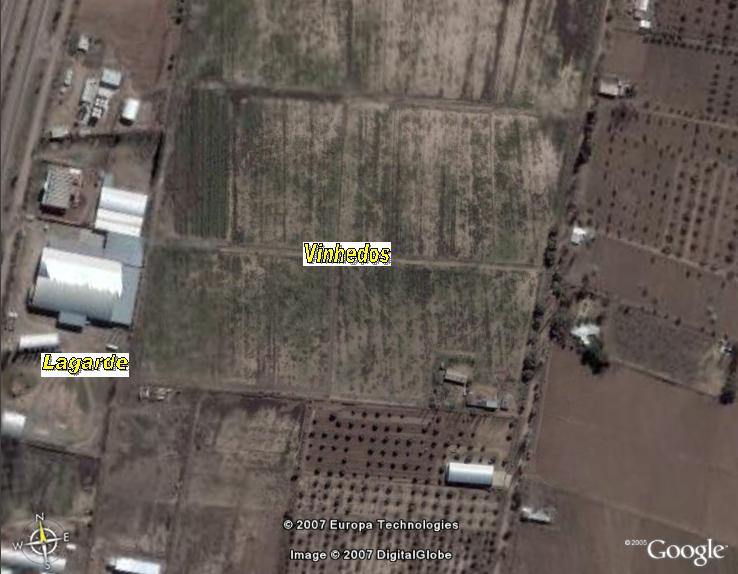 Humberto Cárcamo, inovando nas degustações, não só discorria sobre as vinícolas, como também as mostrava no Google Earth, oferecendo a todos a possibilidade de localizá-las com precisão, identificando, inclusive, os vinhedos. Clique para uma vista aérea da vinícola Lagarde e seus vinhedos.